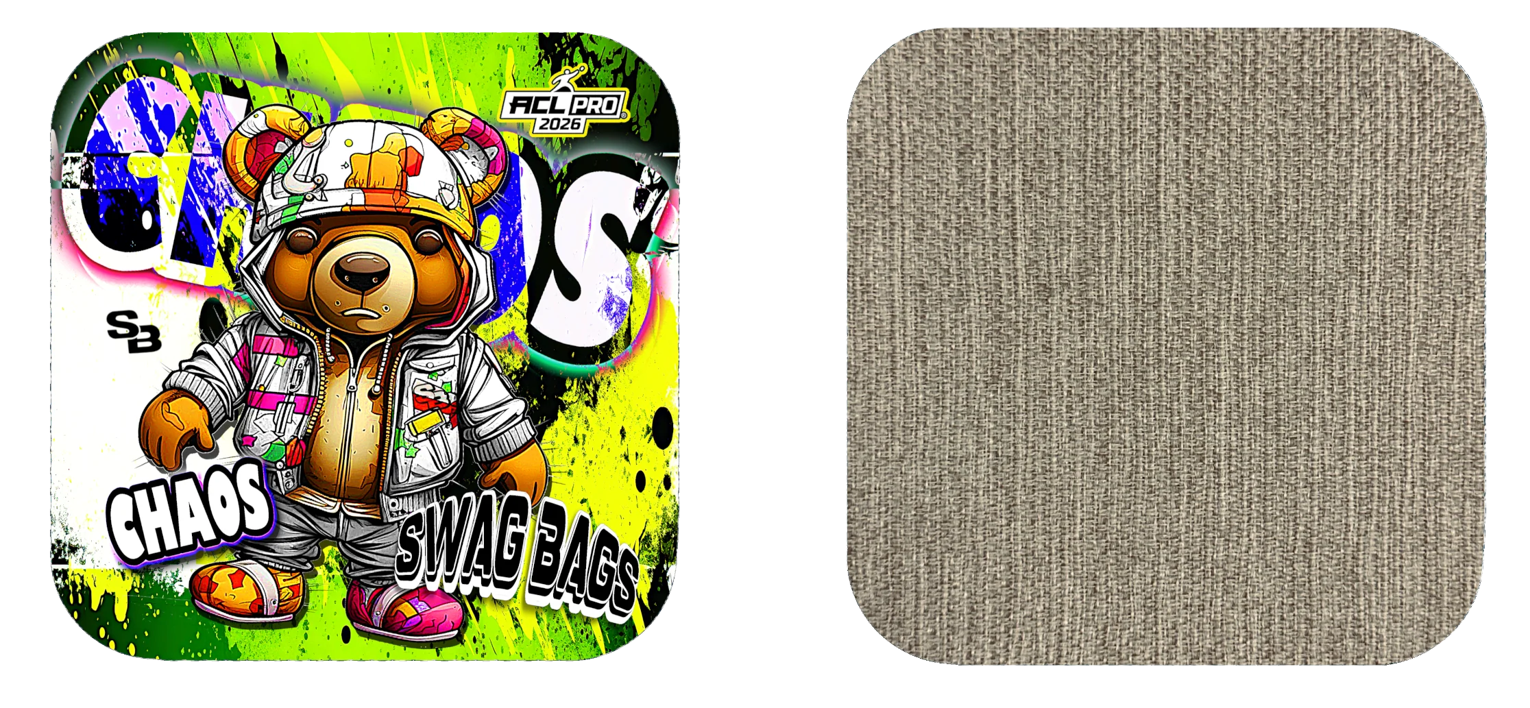 Our Chaos series is engineered to fit nearly any throwing style. The hybrid carpet on the slow side plays at a 5 speed. This carpet slides true with little kick, yet the medium fill in the bag allows it to still roll and cut. The slow side has enough speed for normal slide shots, and can still be used to collect and push bags by harder throwers. This material handles humidity very well, and the performance liner maximizes "drip".